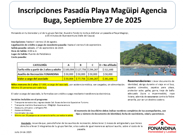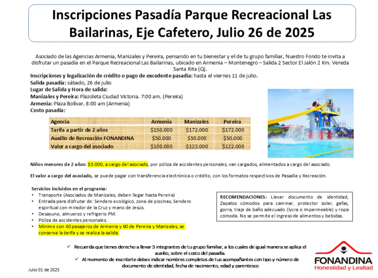 Inscripciones Pasadía Parque Recreacional Las Bailarinas,...