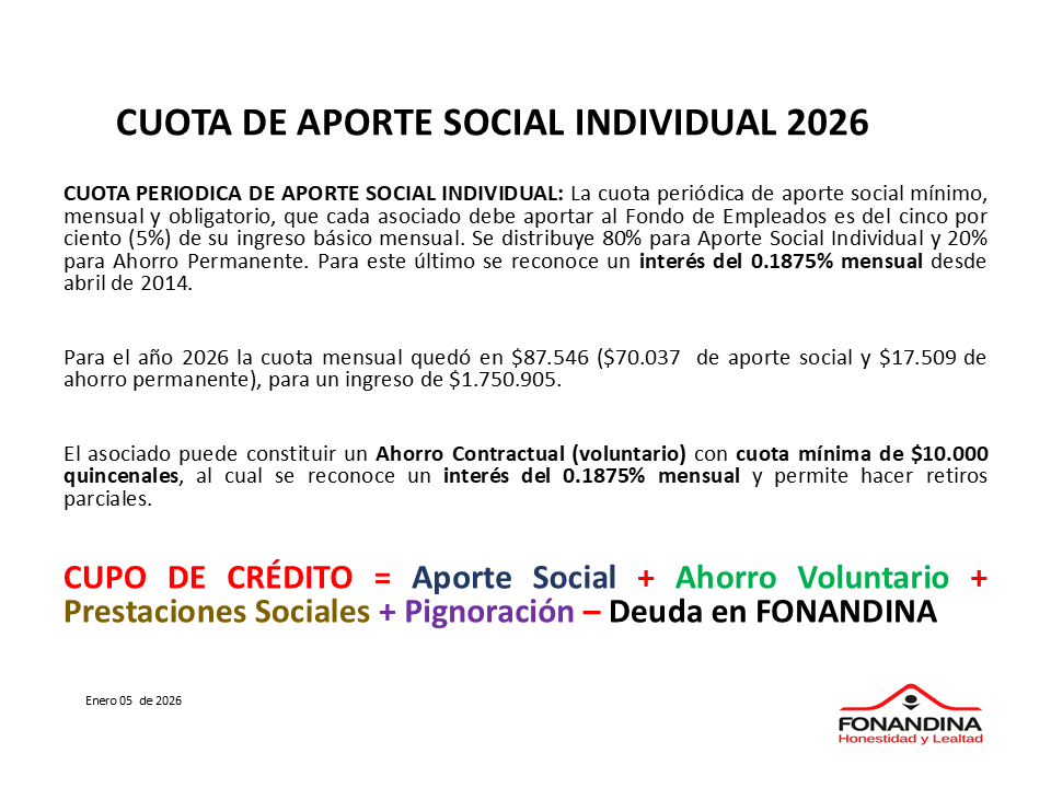 Cuota de Aporte Social Individual 2026